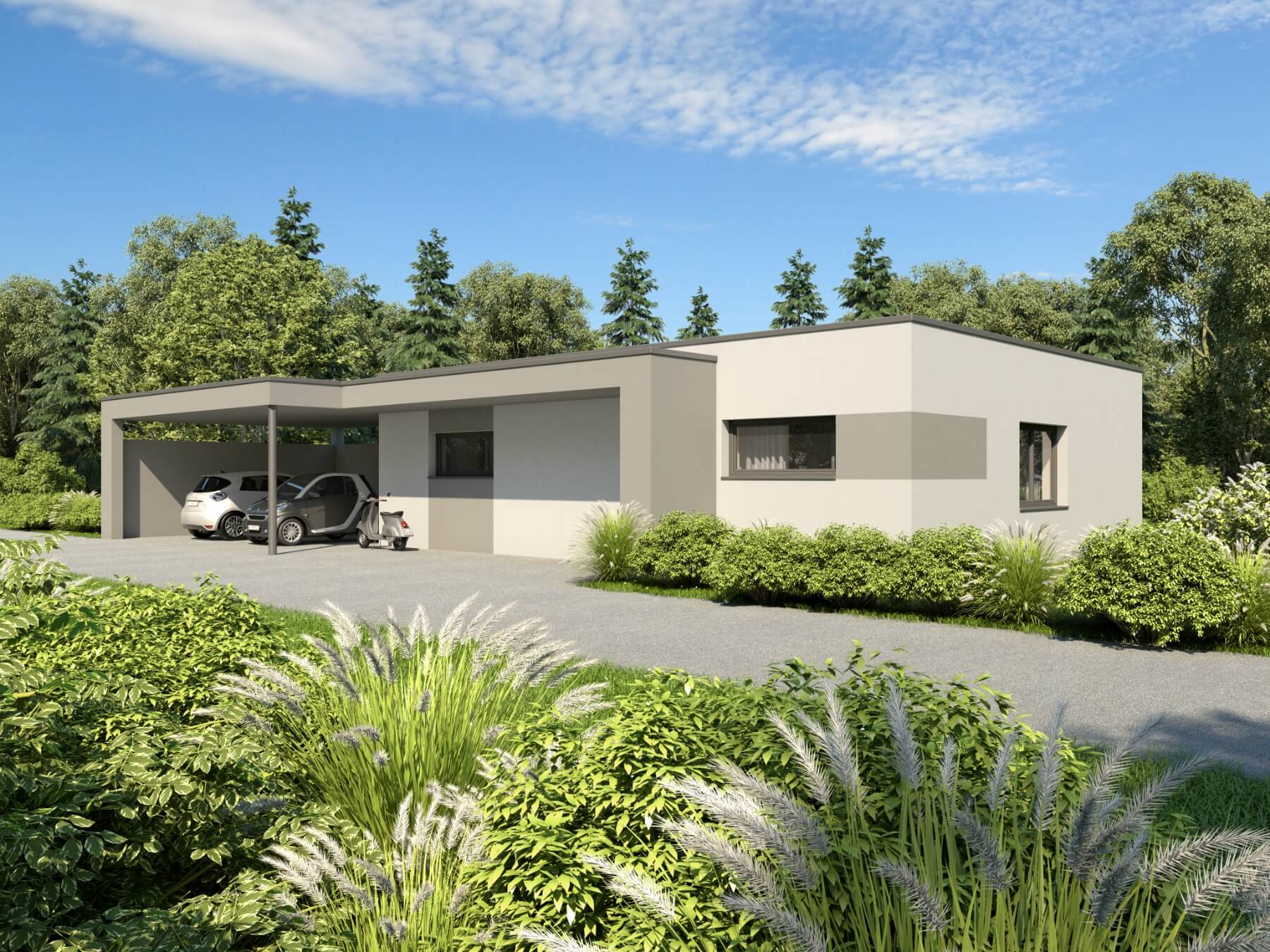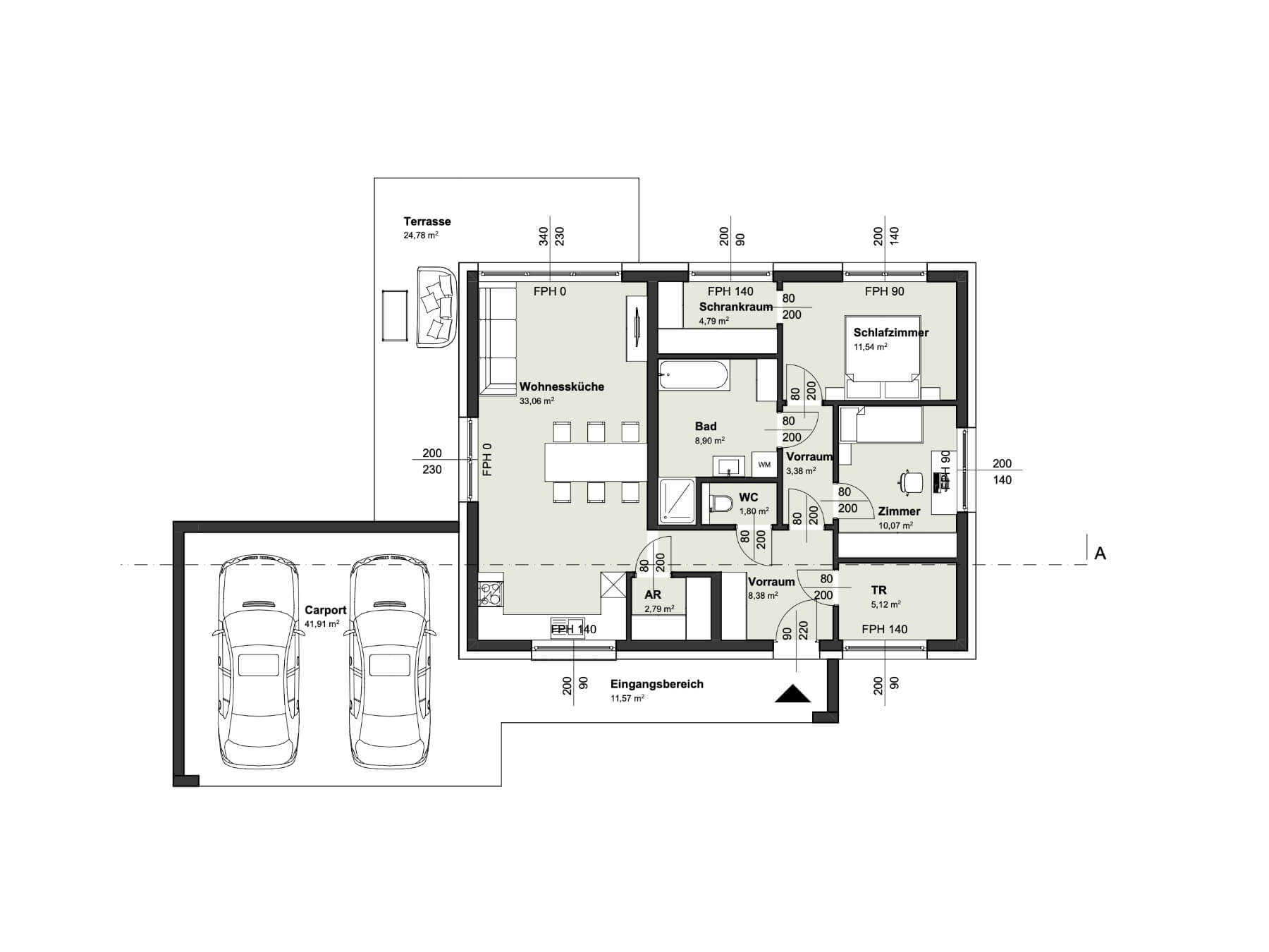 Der WP Bungalow 90 ist unser kleinster Bungalow im Sortiment und bietet auf 90m² alles was man zum Wohlfühlen braucht. Die offene Planung von Koch-Ess-Wohnbereich und die bodentiefen Fenster sorgen für ein lichtdurchflutetes Ambiente. Neben den zwei Schlafzimmern bietet das Haus viel Stauraum und ein großzügiges Badezimmer. Die überdachte Terrasse lädt auch in den warmen Sommermonaten zum gemütlichen Verweilen mit Freunden ein.