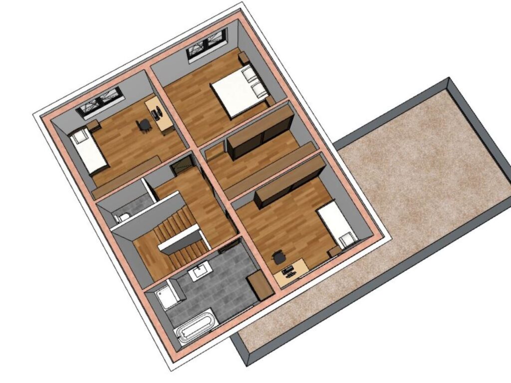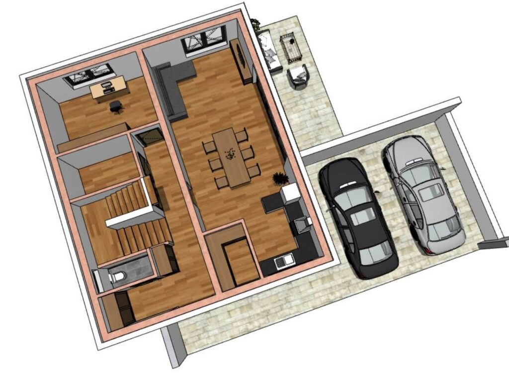 Das Ziegelmassivhaus WP Haus 144 ist perfekt durchdacht und modern umgesetzt. Drei Schlafzimmer im Obergeschoß bieten Raum für Privatsphäre, während im Erdgeschoß der Wohn- und Essbereich mit offener Küche zu geselligen Stunden mit der Familie oder Gästen einlädt. Ein zusätzliches Zimmer im Erdgeschoss kann ganz nach Bedarf genutzt werden.